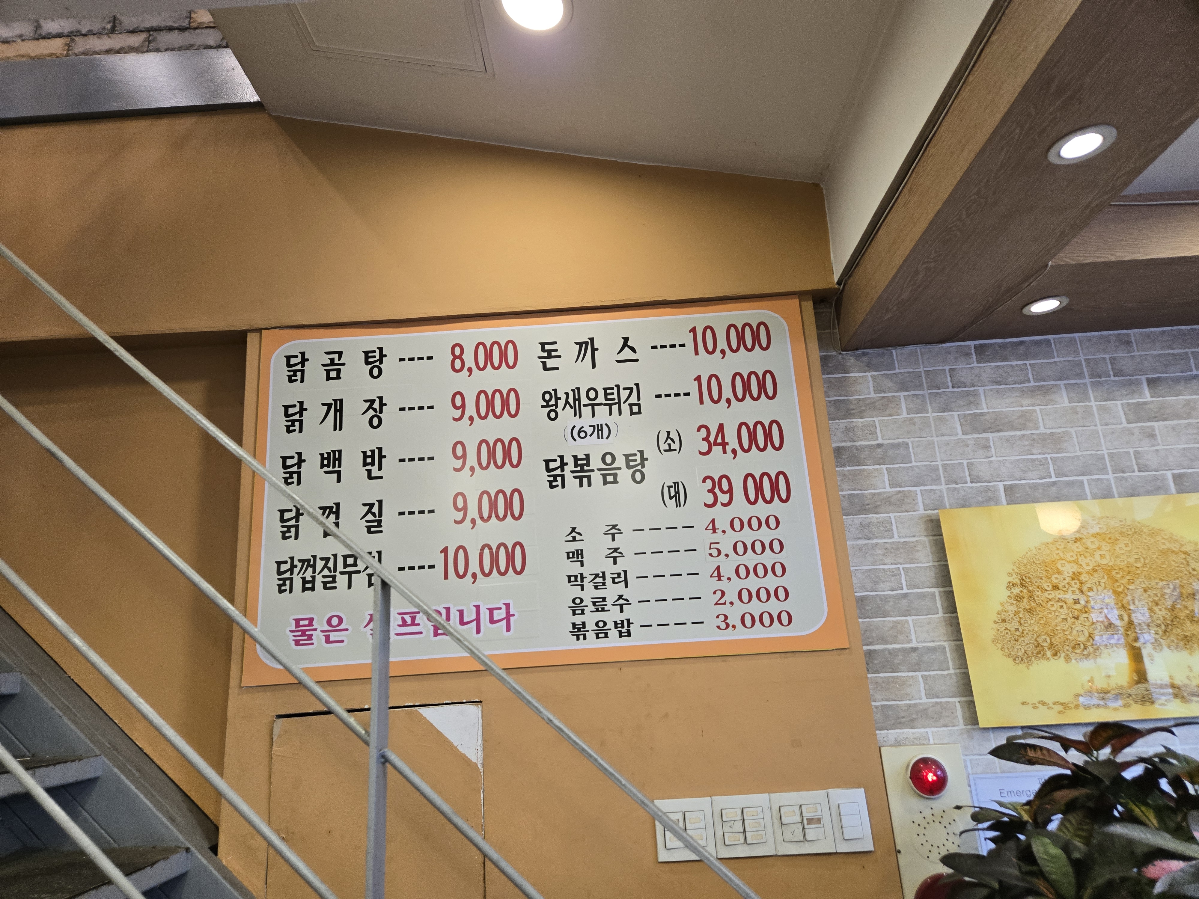 메뉴는 닭개장 닭곰탕 돈까스 닭볶음탕 닭백반 등이 있더라고요.